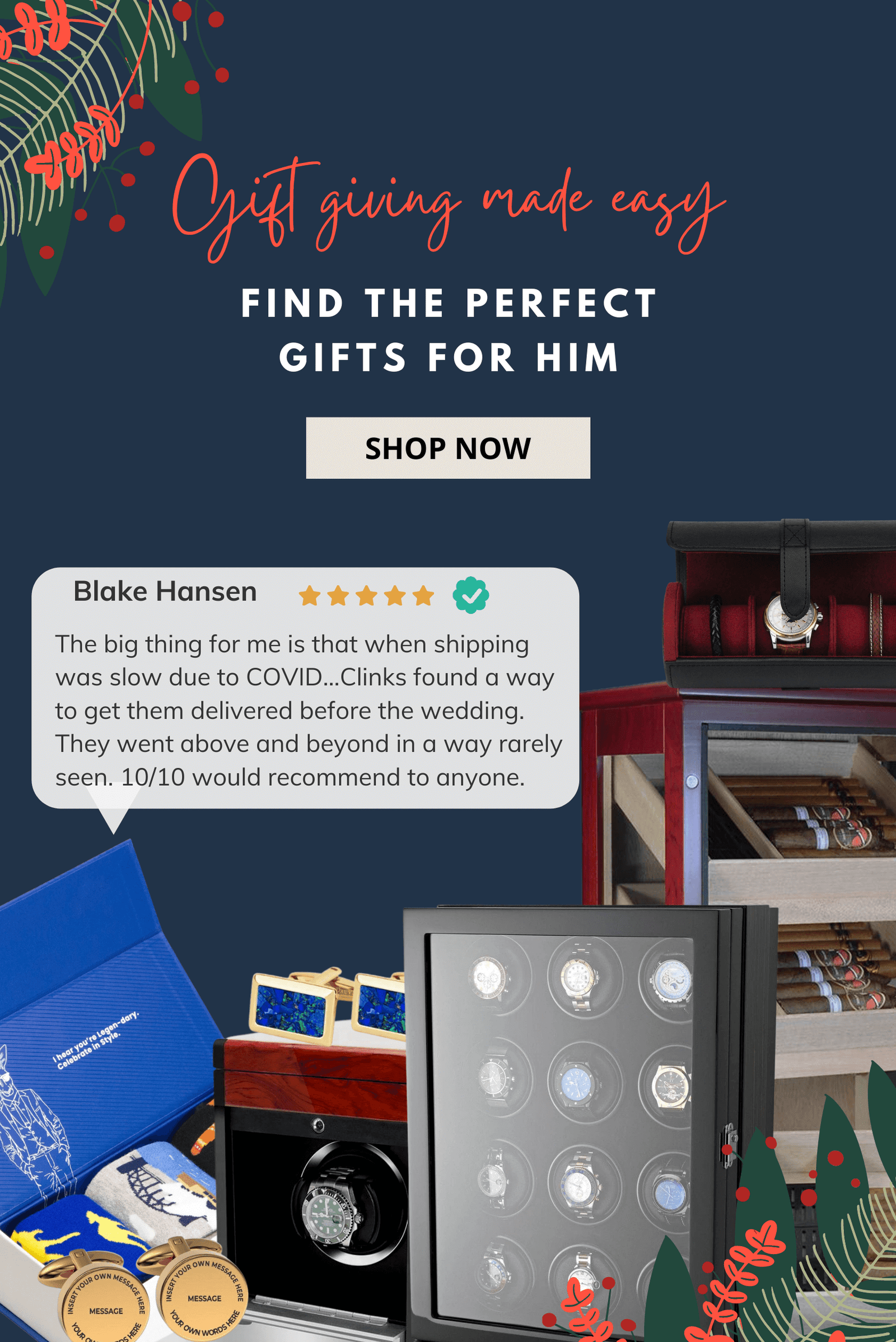 Shop cufflink and tie boxes online on Clinks. Keep your watches wound and ready to wear with self-winding watch box. Surprise someone special with affordable watch winders.  Display boxes and leather cases for watches are also available. Whether it be for your anniversary or "friendversary", you can find unique gifts on Clinks. The possibilities are endless with Clinks unique collection.