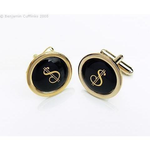 Gold coloured Dollar sign cufflinks - available in either square or round.