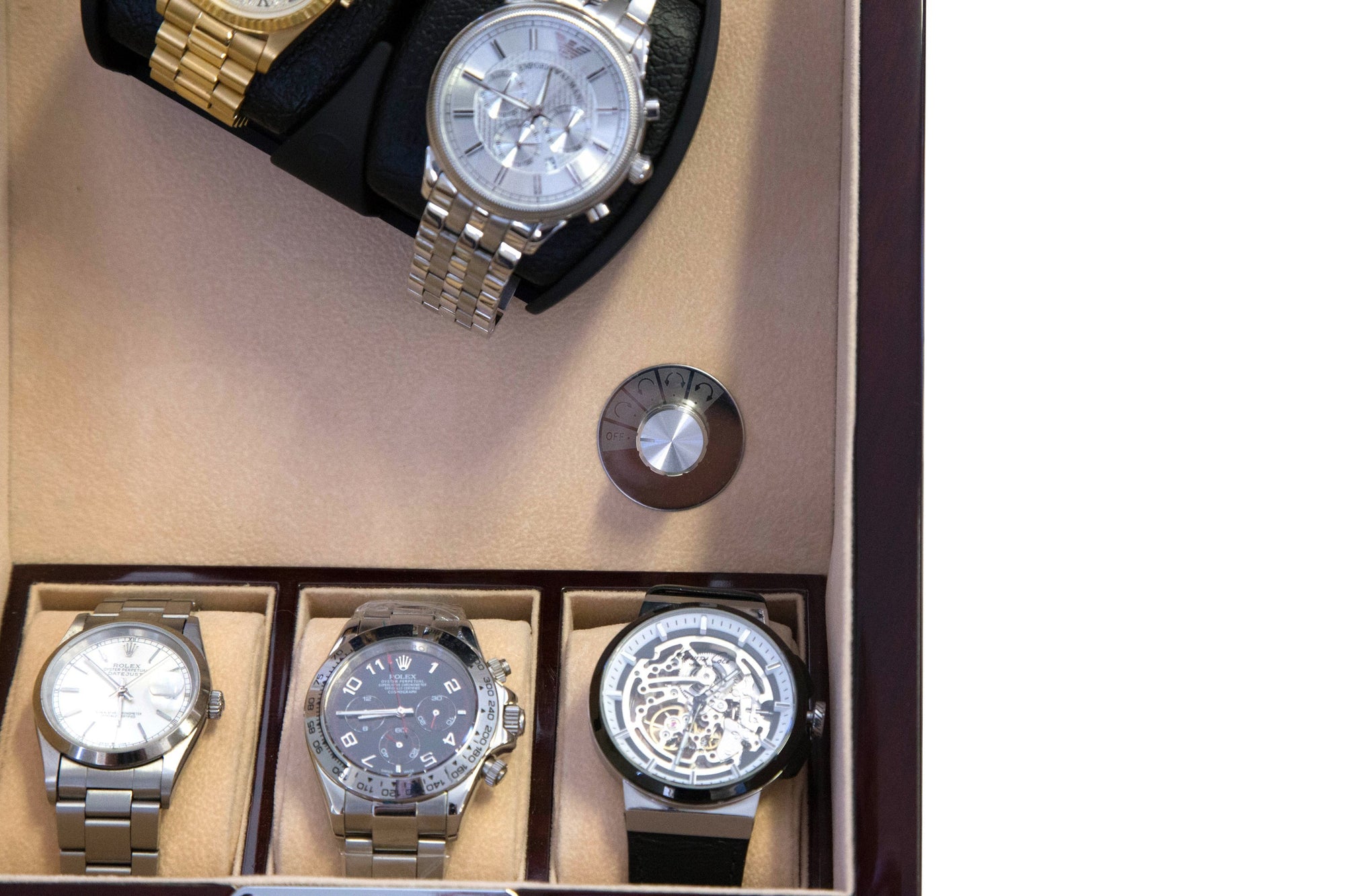 With the new model, the watch winder comes with two separate knobs. These knobs allow you to independently adjust the Turns Per Day (TPD) and direction settings for the watch, offering you unparalleled customization.